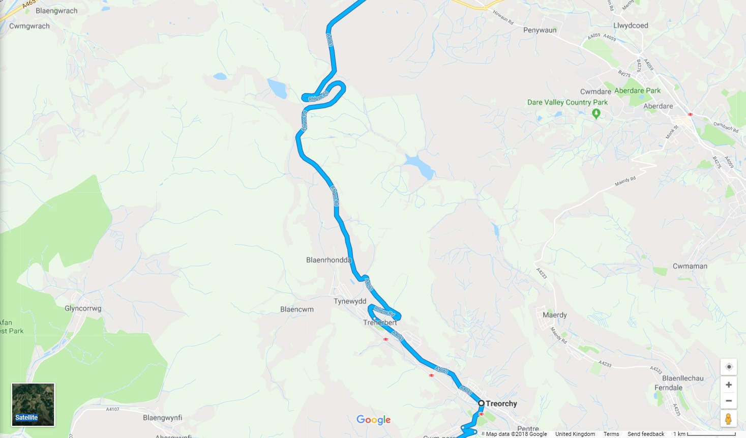 Continue along A4061 through Treorchy and Treherbert; this may be a pain and take a few minutes, but did attract a lot of gobsmacked attention from the locals last year. Then we climb back into the countryside. Fun fact whilst cruising through Treorchy - Max Boyce released the album that made his name from here “Max Boyce - Live at Treorchy”.