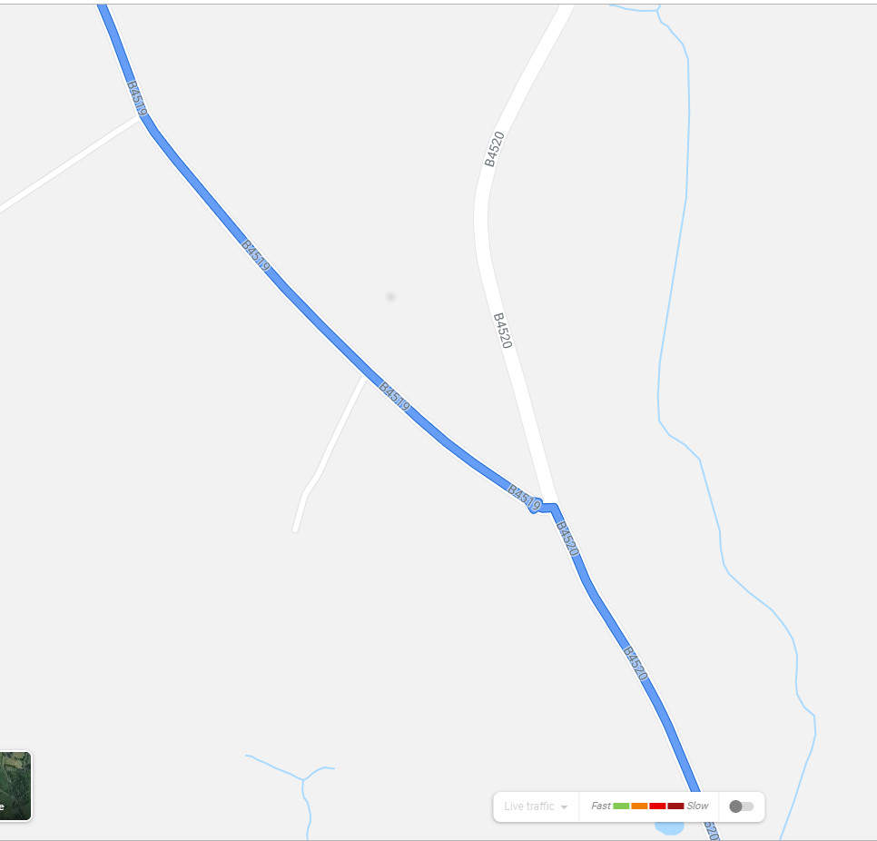 Initial reverse of outbound route towards Brecon along the B4520 and B4067 but with a small change at the Brecon end - see below.