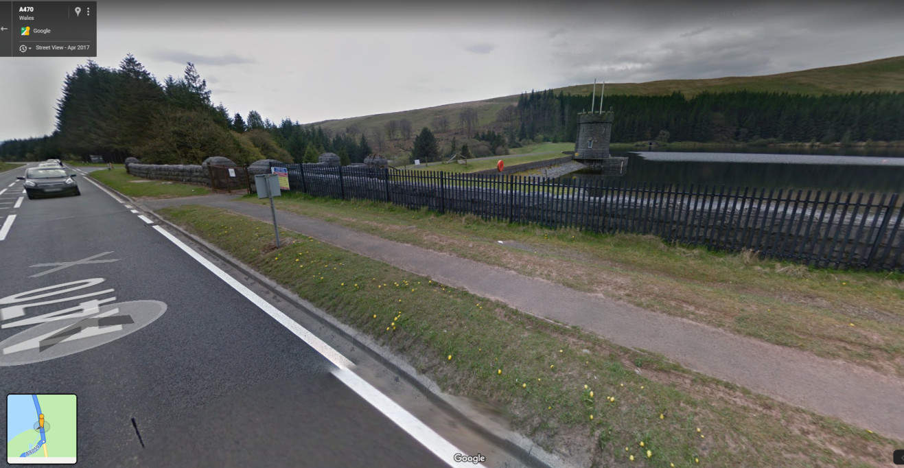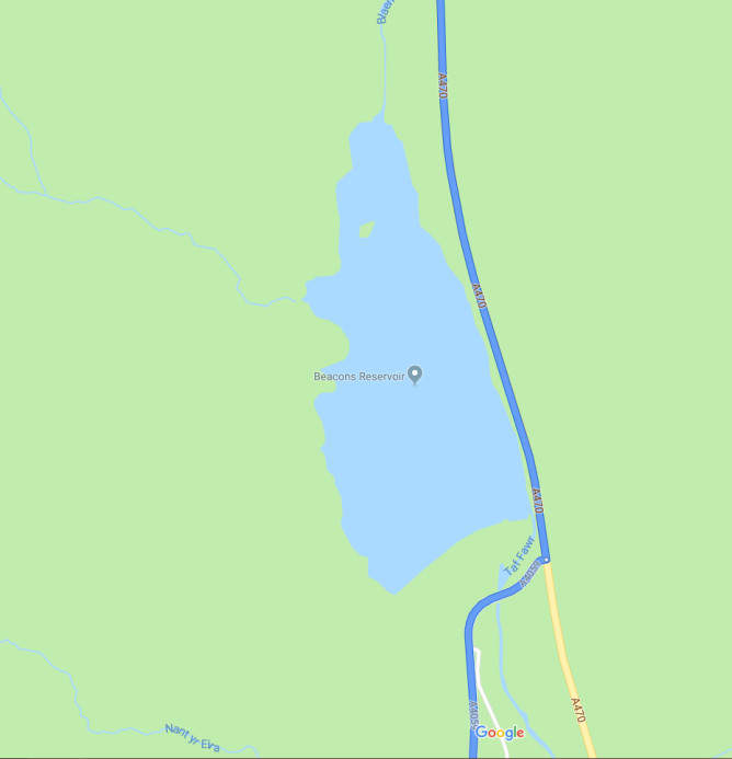 Back down the track and a right turn onto the A470. Stay on A470 keeping an eye out for a reservoir on your right. At the end of the reservoir, turn right onto the A4059